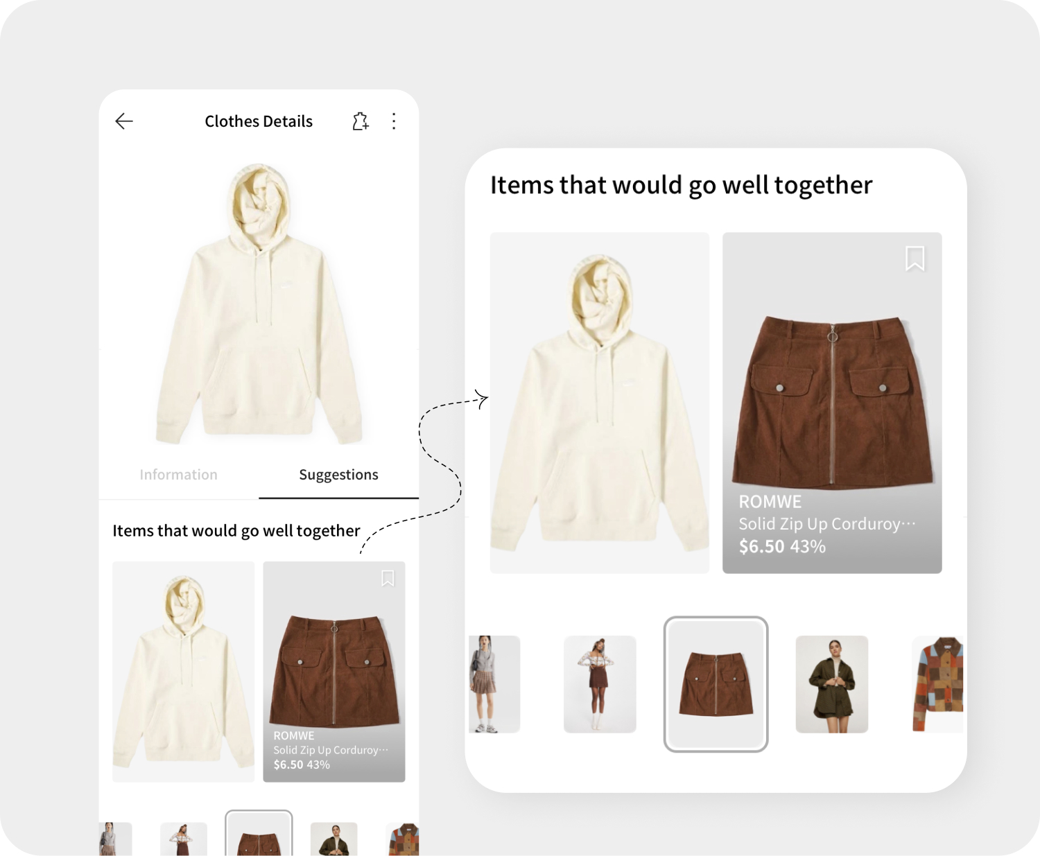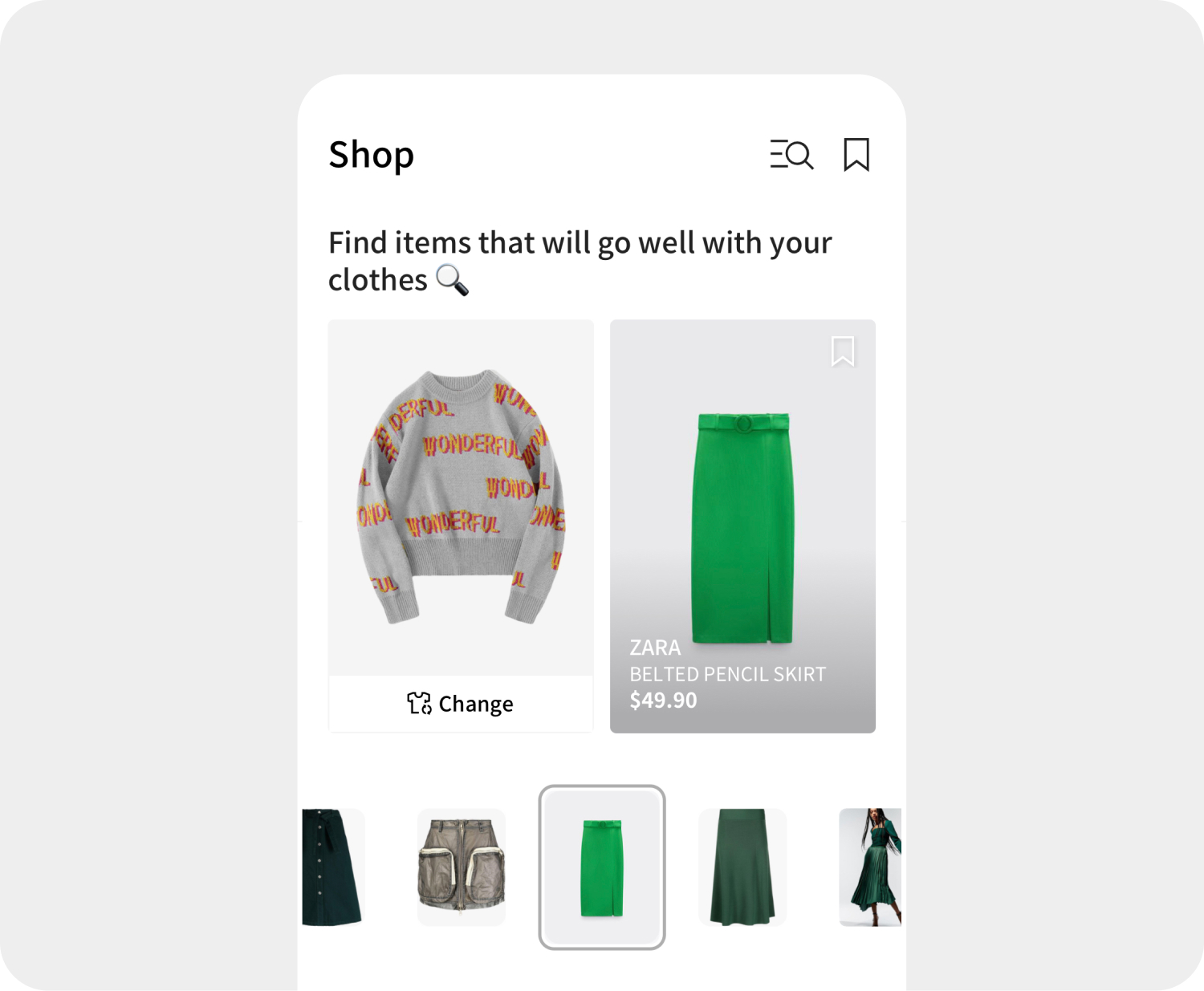 You can get suggestions for products that go well with your clothes in the Shop tab!