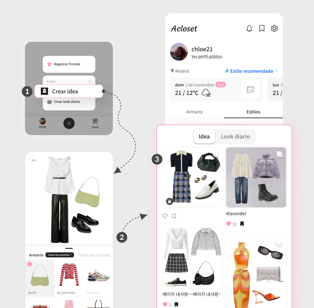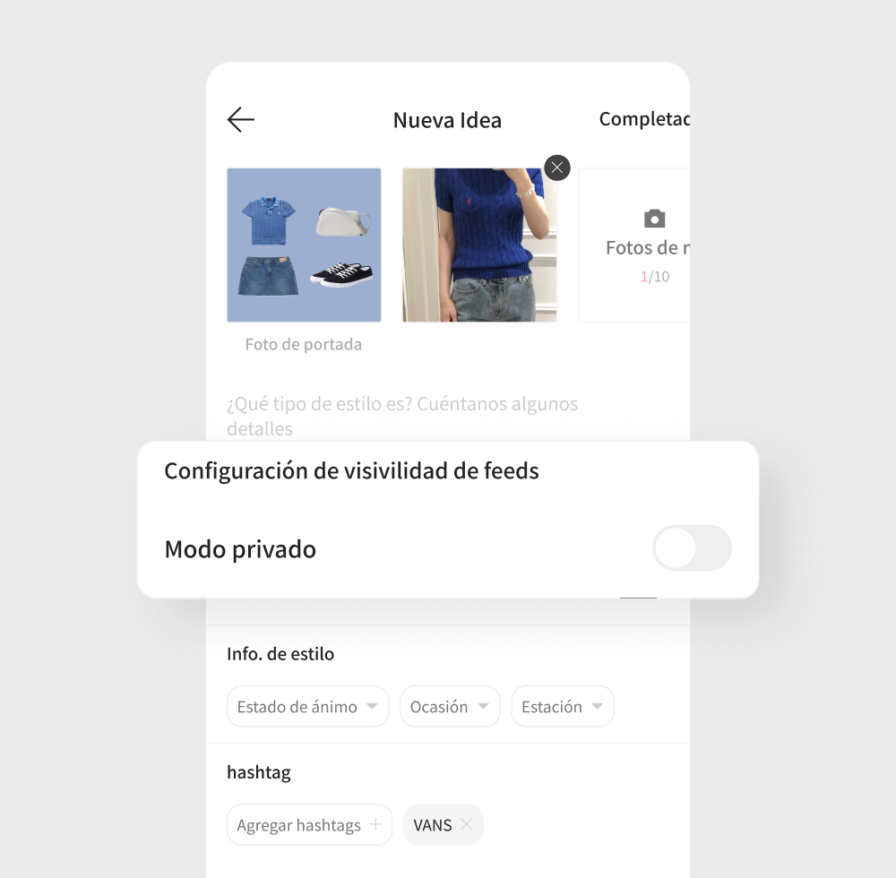 2-2) Publica tus Ideas para compartir inspiración de moda con otros usuarios en tu feed.