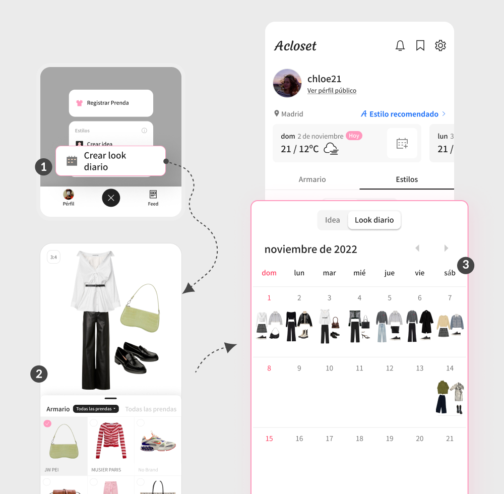 3-2) Los OOTDs se pueden compartir en tu perfil