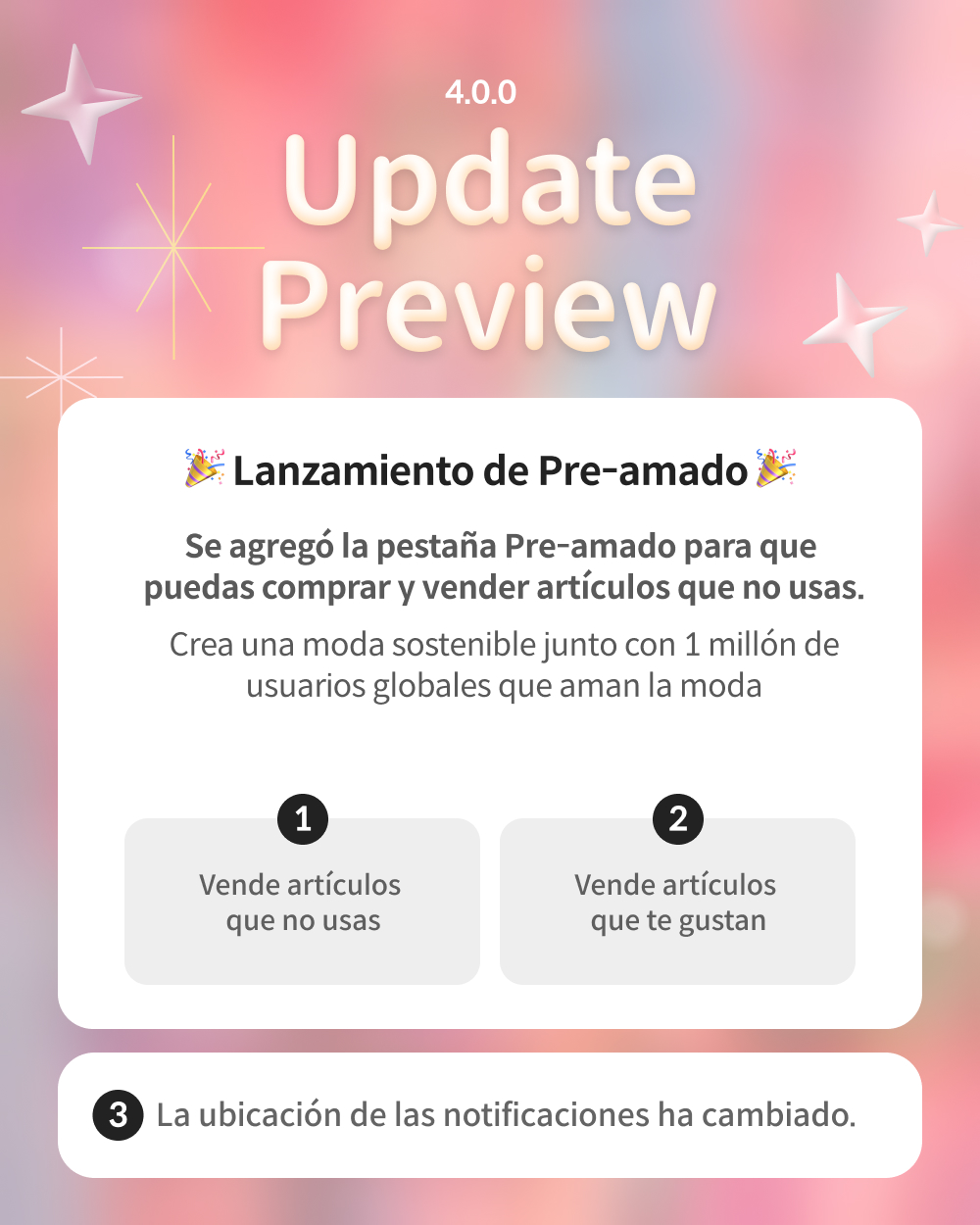 Recientemente, hemos estado escuchando sus comentarios, sugerencias e historias a través de miles de reseñas, correos electrónicos y entrevistas. Después de una cuidadosa consideración, hemos decidido lanzar una nueva característica que permitirá a los usuarios comprar y vender artículos de moda prelimidos. Esto le permitirá vender ropa que ya no usa y también comprará artículos de otros usuarios. Creemos que esta característica complementará nuestro guardarropa digital.