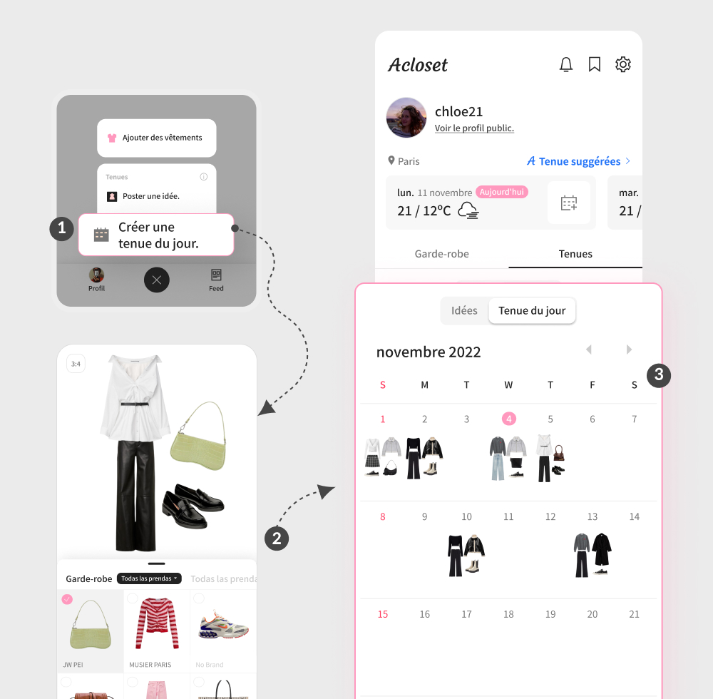 3-1) Appuyez sur le bouton « Schedule OOTD » pour planifier votre tenue et enregistrer votre propre historique de la mode