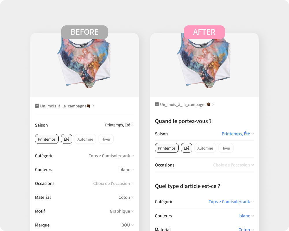 Vérifiez et modifiez en un coup d'oeil les infos du vêtement dans la page de spécifications