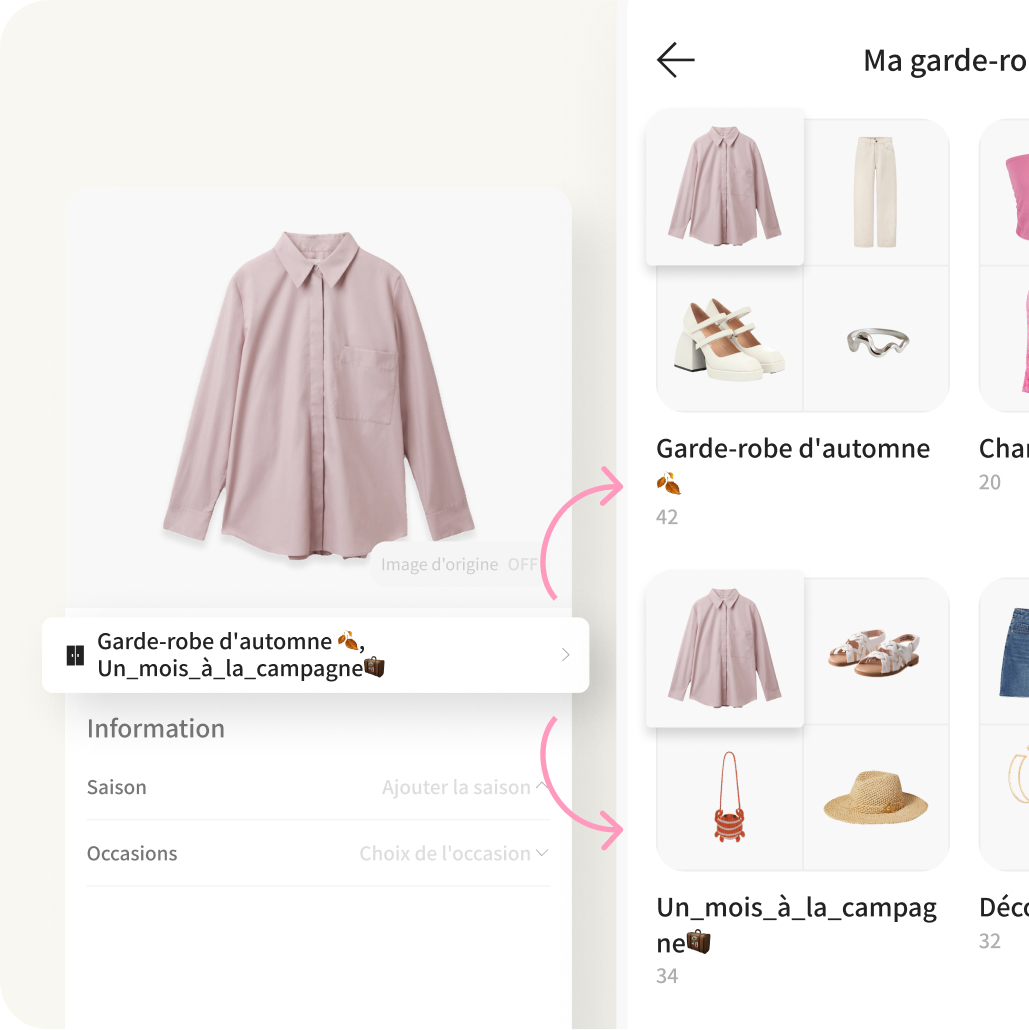 Vous pouvez ajouter un vêtement dans plusieurs garde-robes si vous en avez besoin