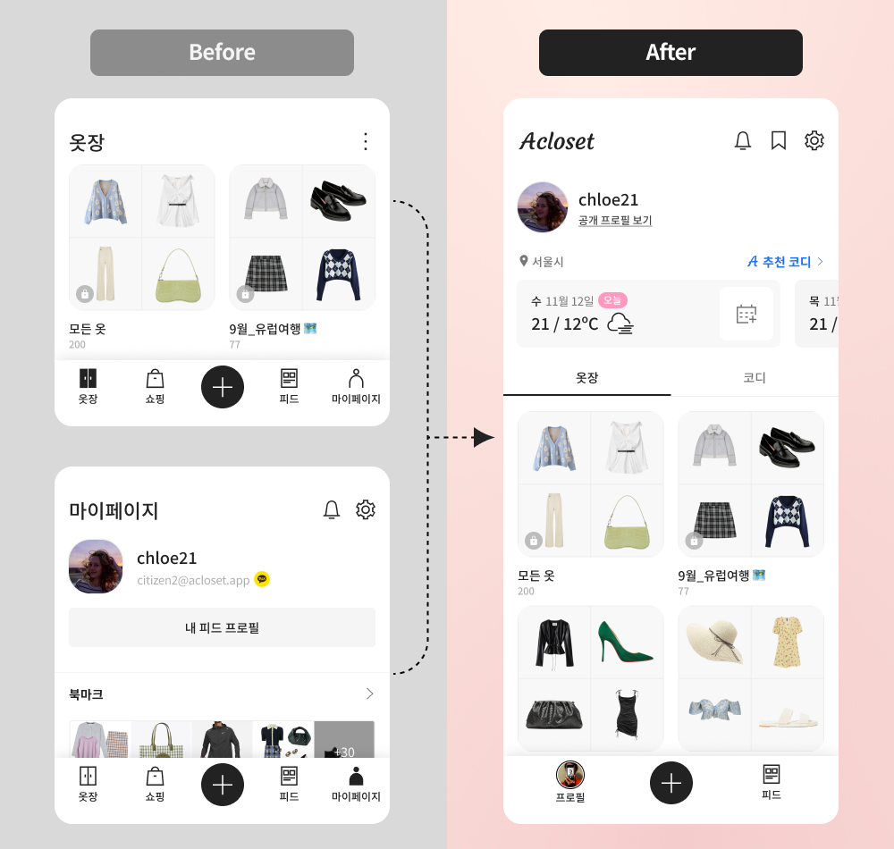 1 옷장 탭과 마이페이지 탭이 프로필 탭으로 통합됐어요
