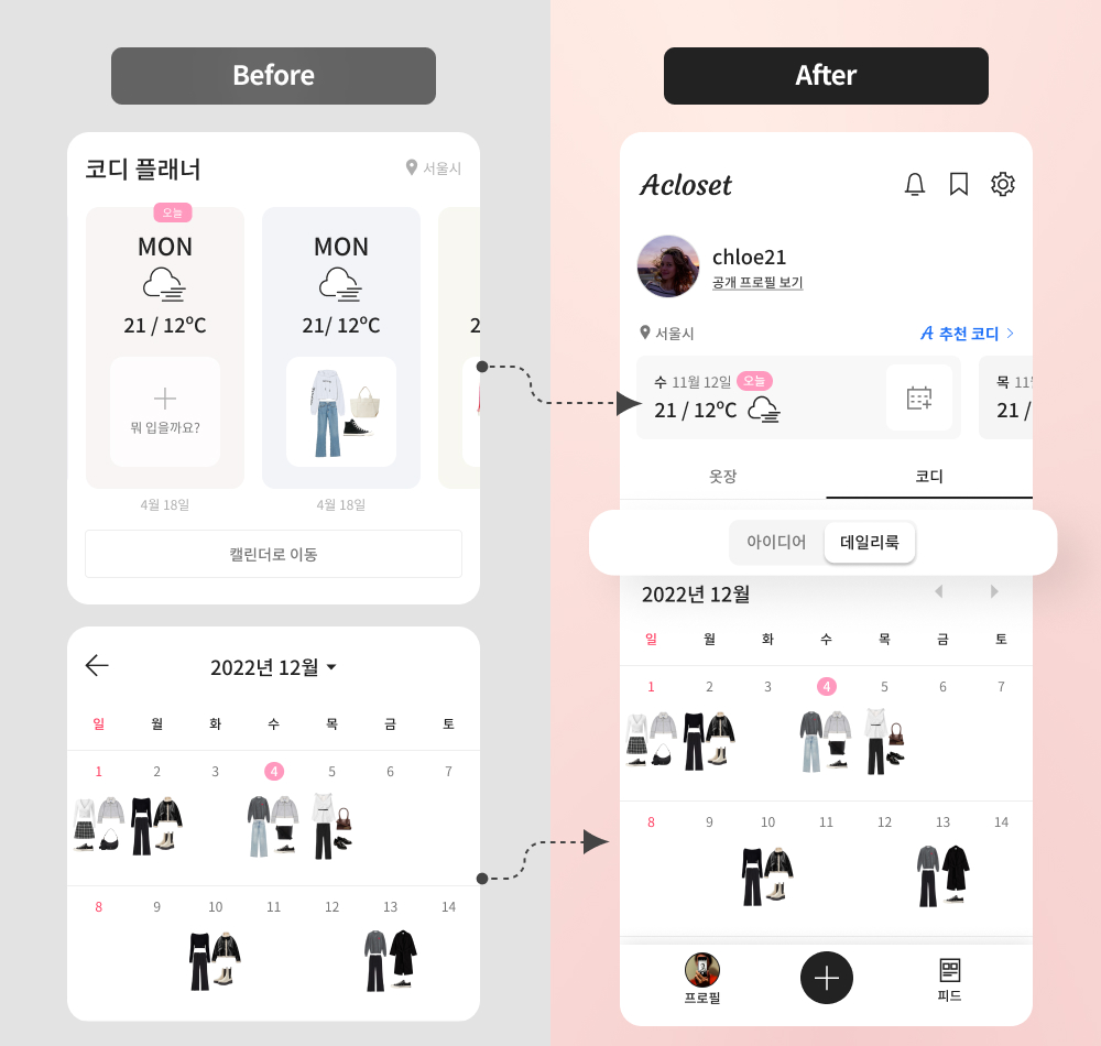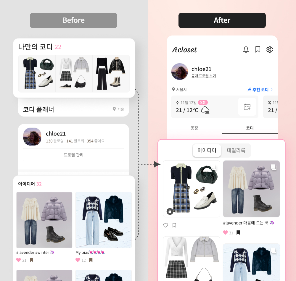 2 나만의 코디와 피드 아이디어가 아이디어로 통합됐어요