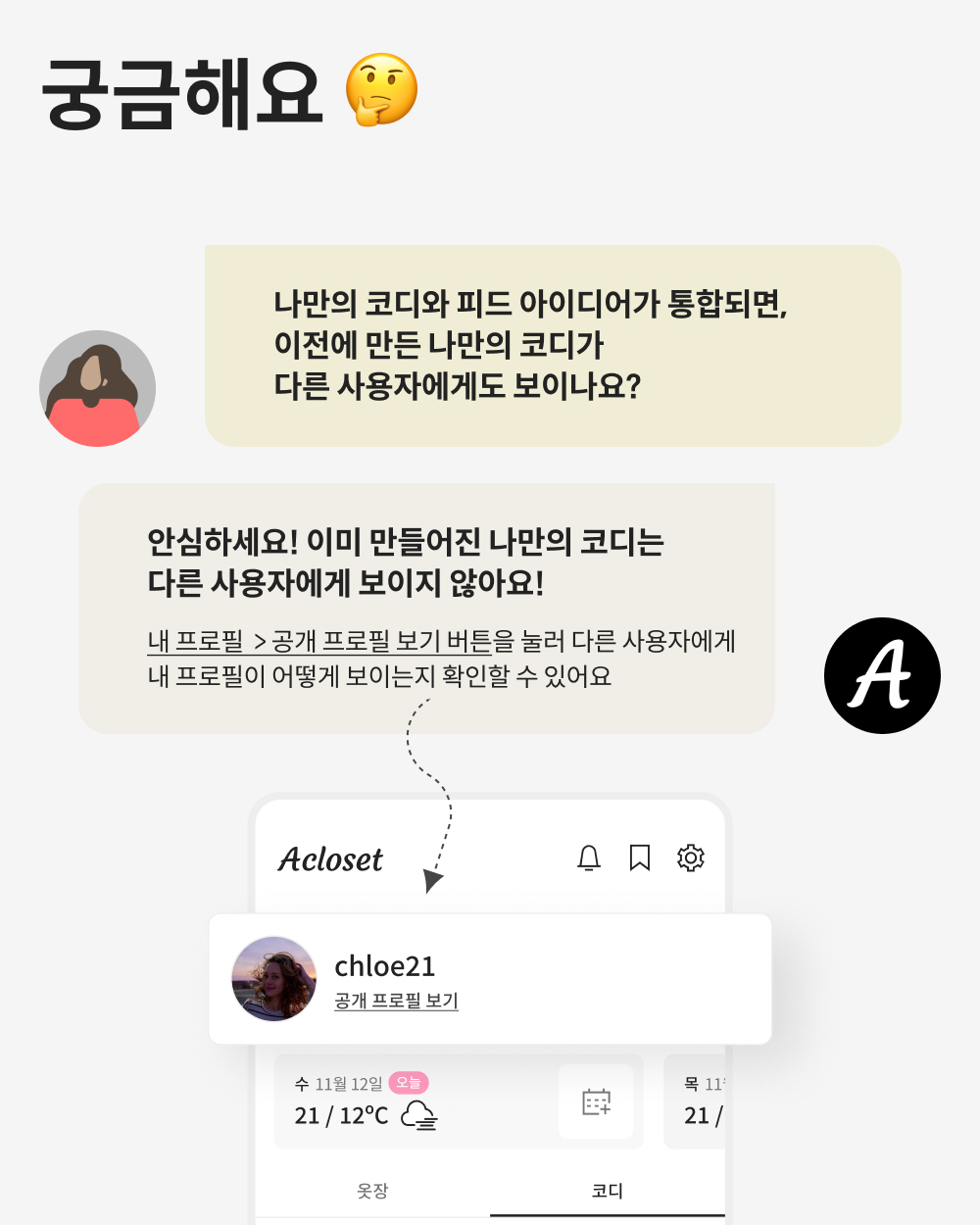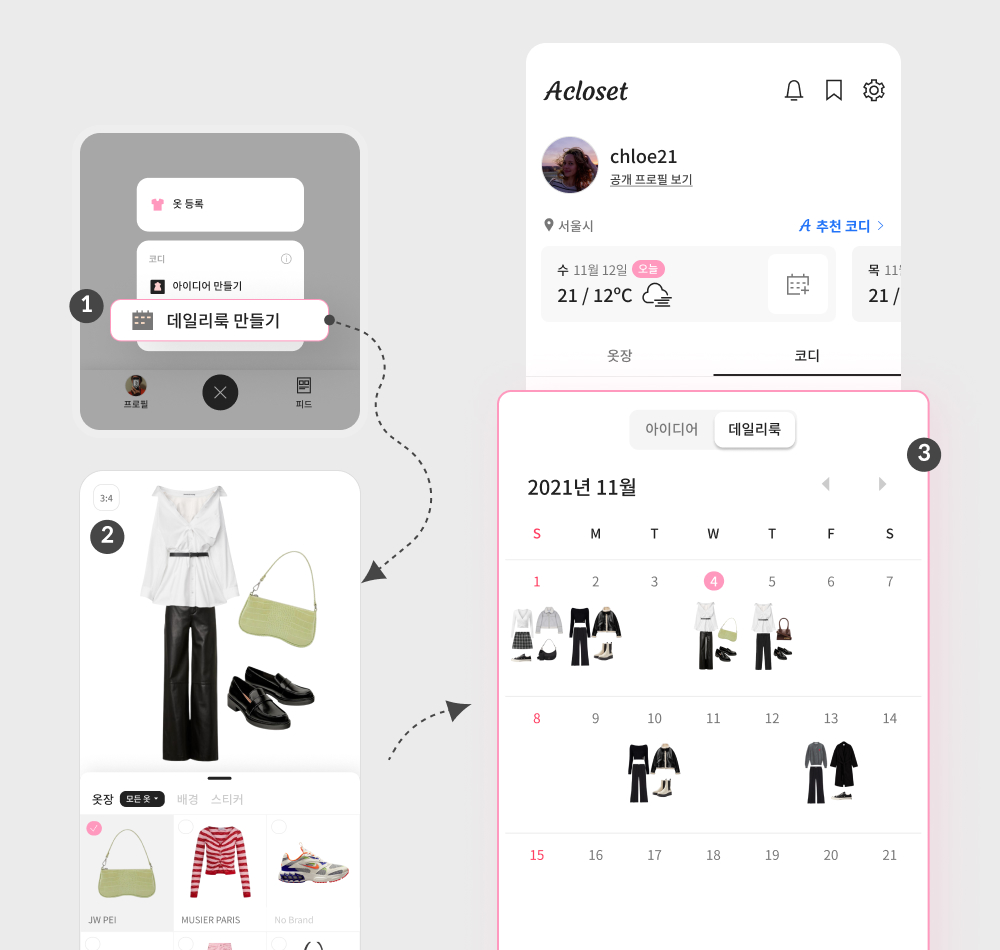 3-2) 데일리룩은 프로필에서 공개할 수 있어요