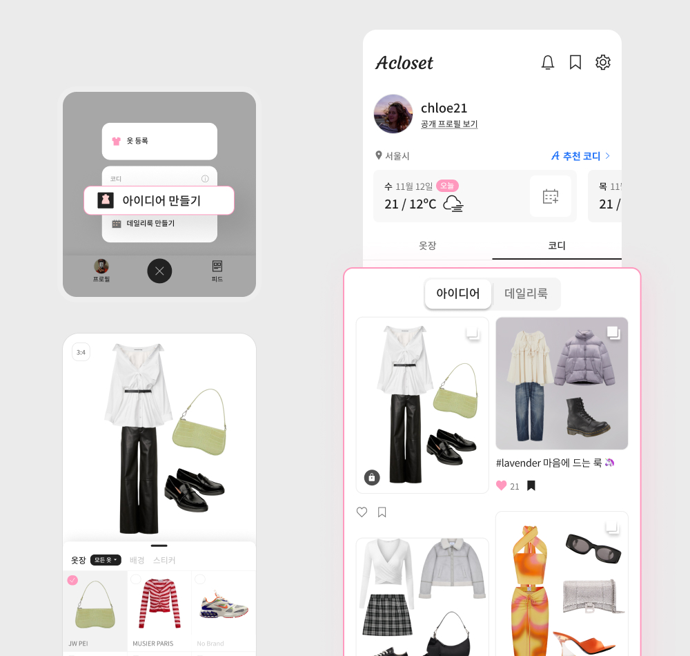 이전에 만들었던 나만의 코디와, 피드 아이디어는