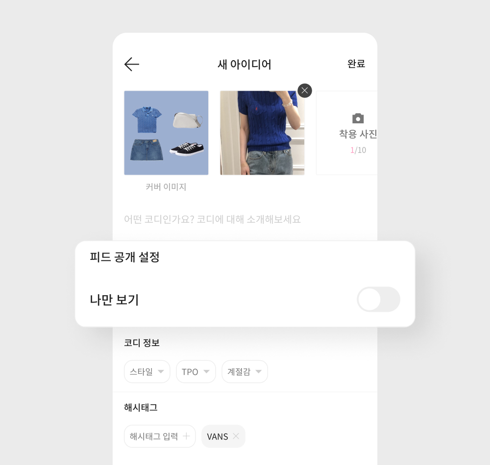 2-2) 아이디어를 공개하여 피드에서 다른 사용자들과 패션 영감을 주고받아보세요