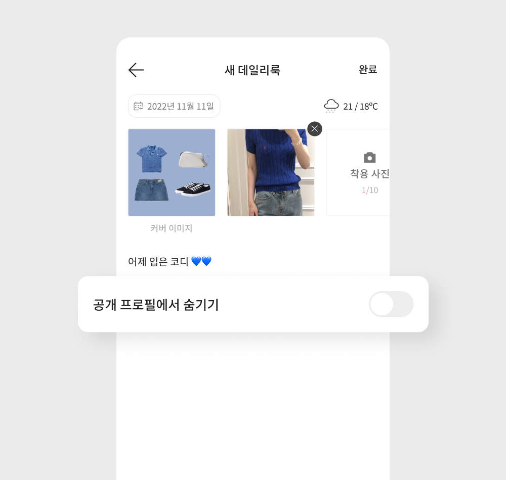 다른 사용자는 프로필에서 공개한 데일리룩을 볼 수 있어요