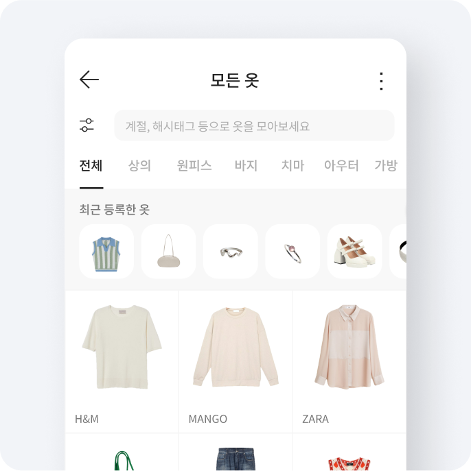 모든 옷에서는 내가 가진 옷 전체를 살펴보고 👀