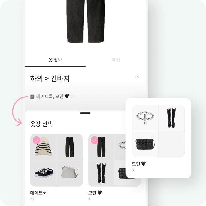원하는 옷장에서 코디 추천을 받아보세요