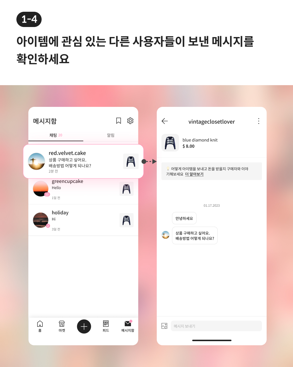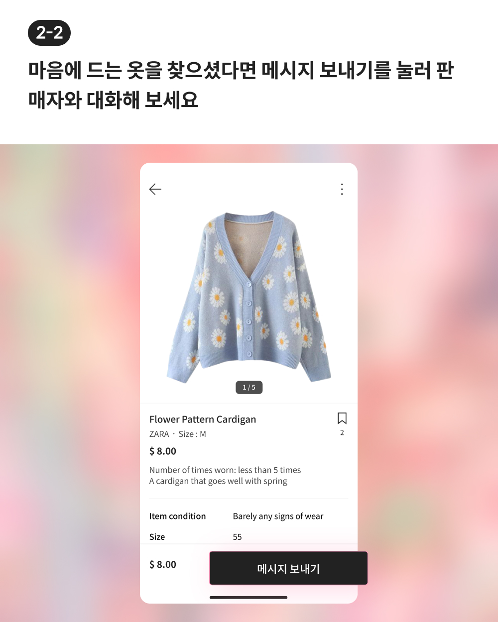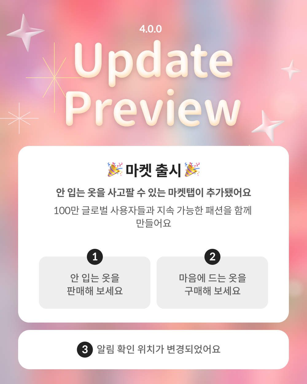 아래에서 다음 버전에서 업데이트될 중고 거래 기능에 대해 간단한 소개를 보실 수 있습니다. 많은 관심을 부탁드립니다. 또, 추가적인 제안에는 언제든지 귀 기울이겠습니다. 저희는 “옷은 많은데 입을 옷이 없다” 라는 패션의 고질적인 문제를 해결하고, 지속가능하고 스마트한 패션 생활을 즐길 수 있는 플랫폼이 되도록 최선을 다하겠습니다.